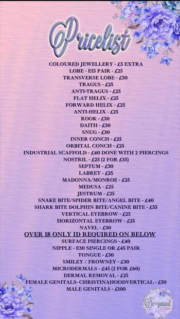 Maxine will go through your aftercare with you at the end of the piercing. Feel free to ask any questions or concerns you have.
